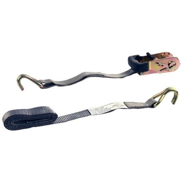 1" x 6' Ratchet Strap (Single) with Rubber Coated Ratchet and Wire Hooks - Motorcycle Tie Down Feature