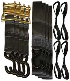 - Includes (4) ratchet S-hook straps, (4) S-hook tie-downs, and (4) soft loops